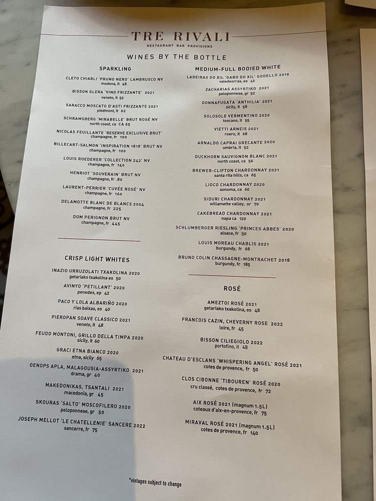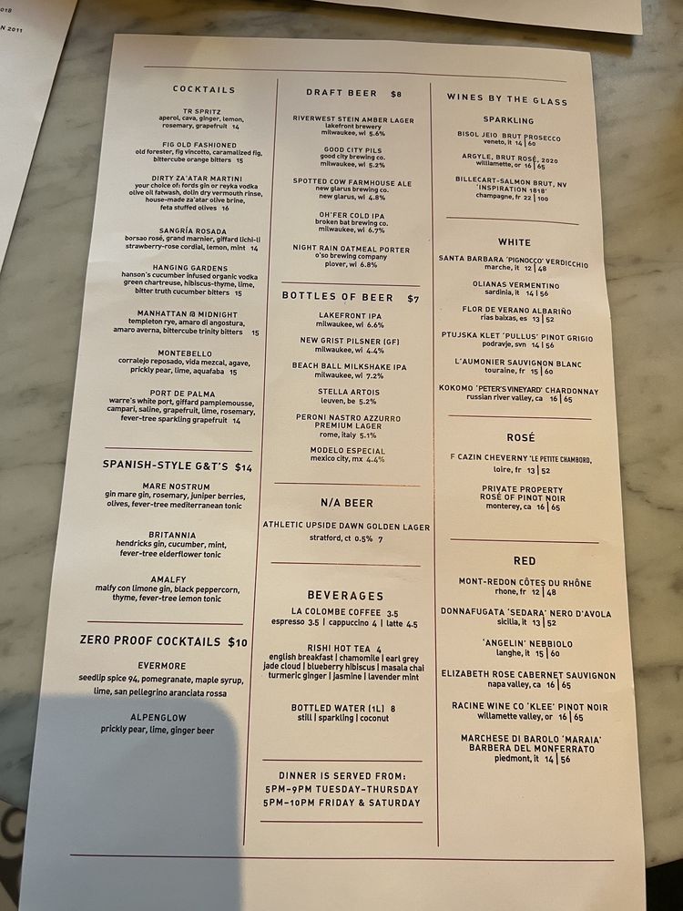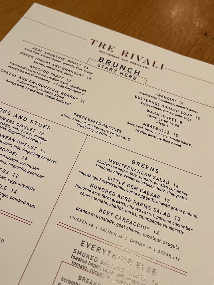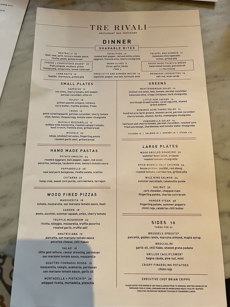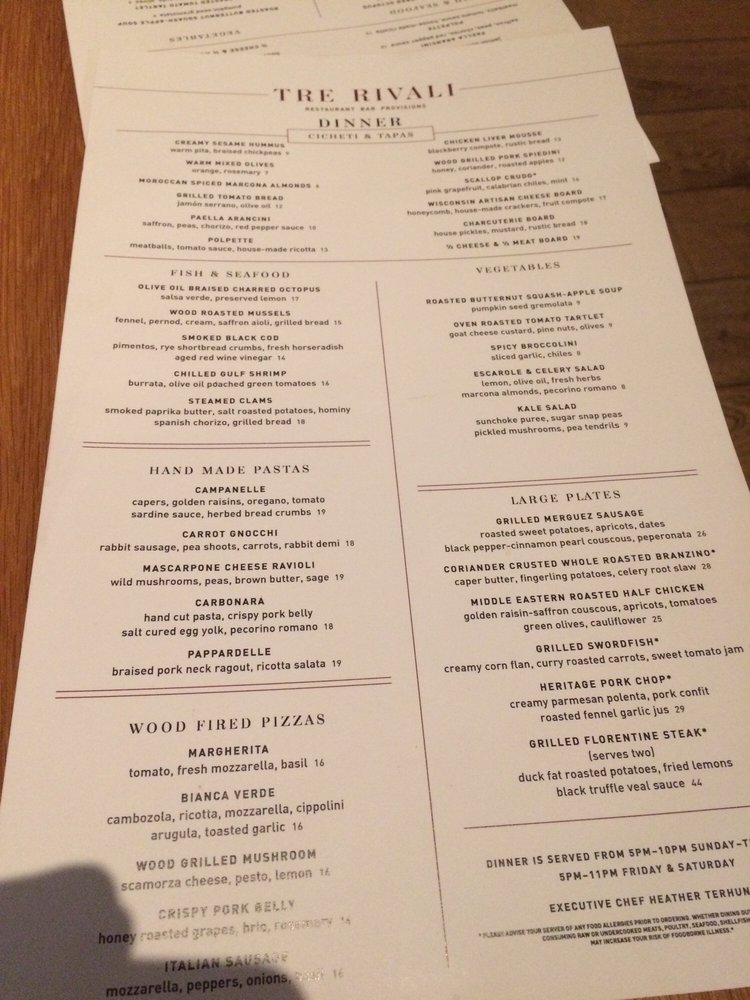 Tre Rivali presents a fusion of Mediterranean and New American cuisine, offering a variety of sharable bites, dips, spreads, hand-made pastas, and more. Located in Milwaukee, WI, this trendy spot features outdoor seating, a full bar, and happy hour specials. With options for vegetarians, gluten-free diners, and even dog-friendly outdoor seating, Tre Rivali caters to diverse preferences. Customers praise the ambiance, attentive service, and flavorful dishes highlighting lamb kawarma, squid ink spaghetti, and pappardelle bolognese. While some diners note issues with saltiness in certain dishes, the overall dining experience at Tre Rivali is described as upscale and satisfying. For a memorable dining experience with a touch of Mediterranean flair, Tre Rivali is a worthy choice in the vibrant Third Ward neighborhood.