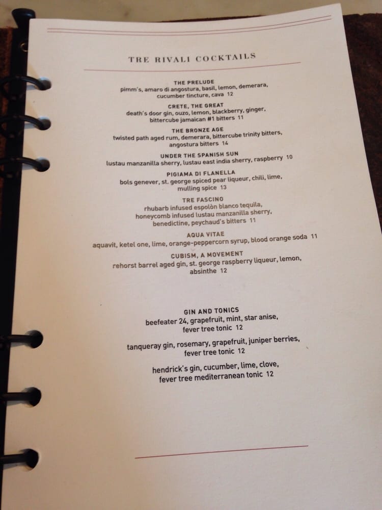 Tre Rivali Menu